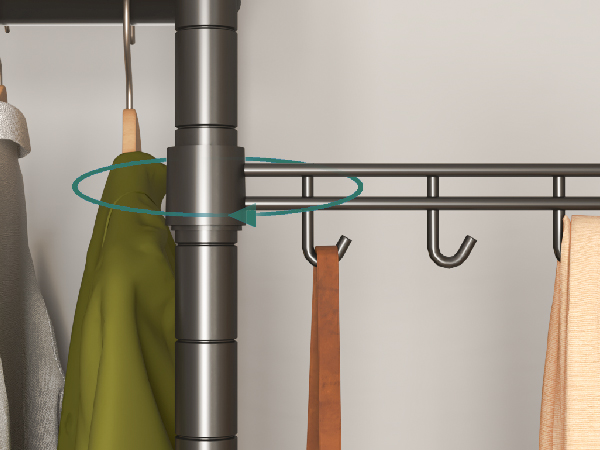 DIY assembly, raise or lower the shelving for exactly what you need to create the Well-Organized wardrobe closet of your dreams. 360 degree rotatable hook can be rotated to different positions according to your needs, such as ironing clothes, hanging scarves, bags, etc.